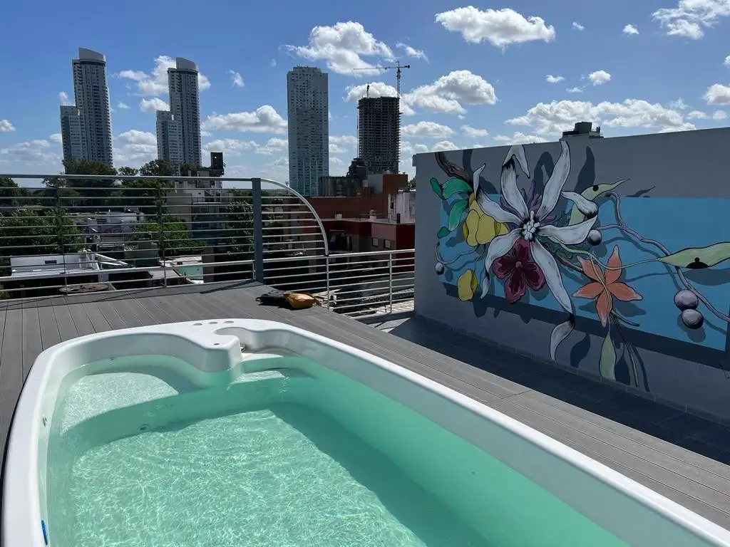El edificio cuenta con amenities de uso compartido en la terraza: piscina y parrillero.