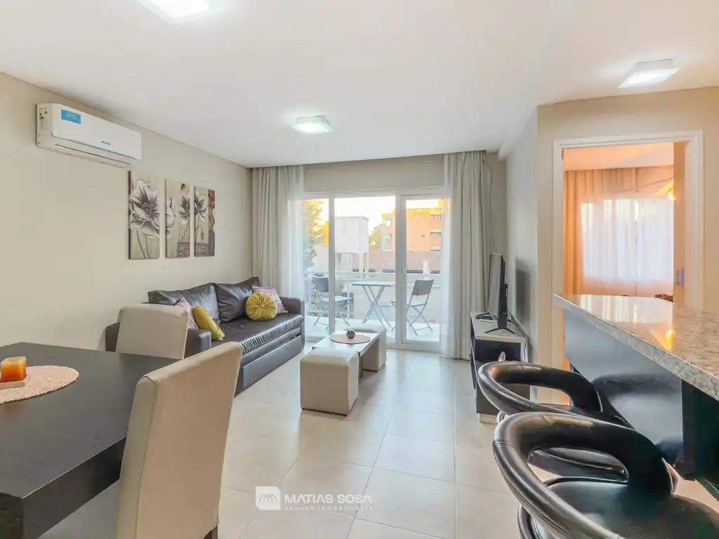 Departamento de 2 ambientes en Pinamar, ubicado en Enrique Shaw 850. Cuenta con living comedor, cocina integrada, balcón saliente, baño completo con bañadera y dormitorio. Incluye una cochera cubierta para vehículo, otra para cuatriciclo y una baulera. El edificio cuenta con piscina cubierta, descubierta y sala de juegos.