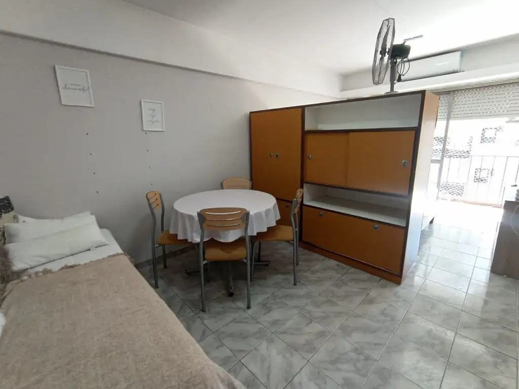 En esta oportunidad ofrecemos en alquiler monoambiente al frente con balcón, tercer piso, a metros del Shopping Aldrey , desde 01/03 AL 30/11. El mismo cuenta con aire acondicionado, heladera con freezer y televisor como así también muebles tal cual se ve en las fotos.