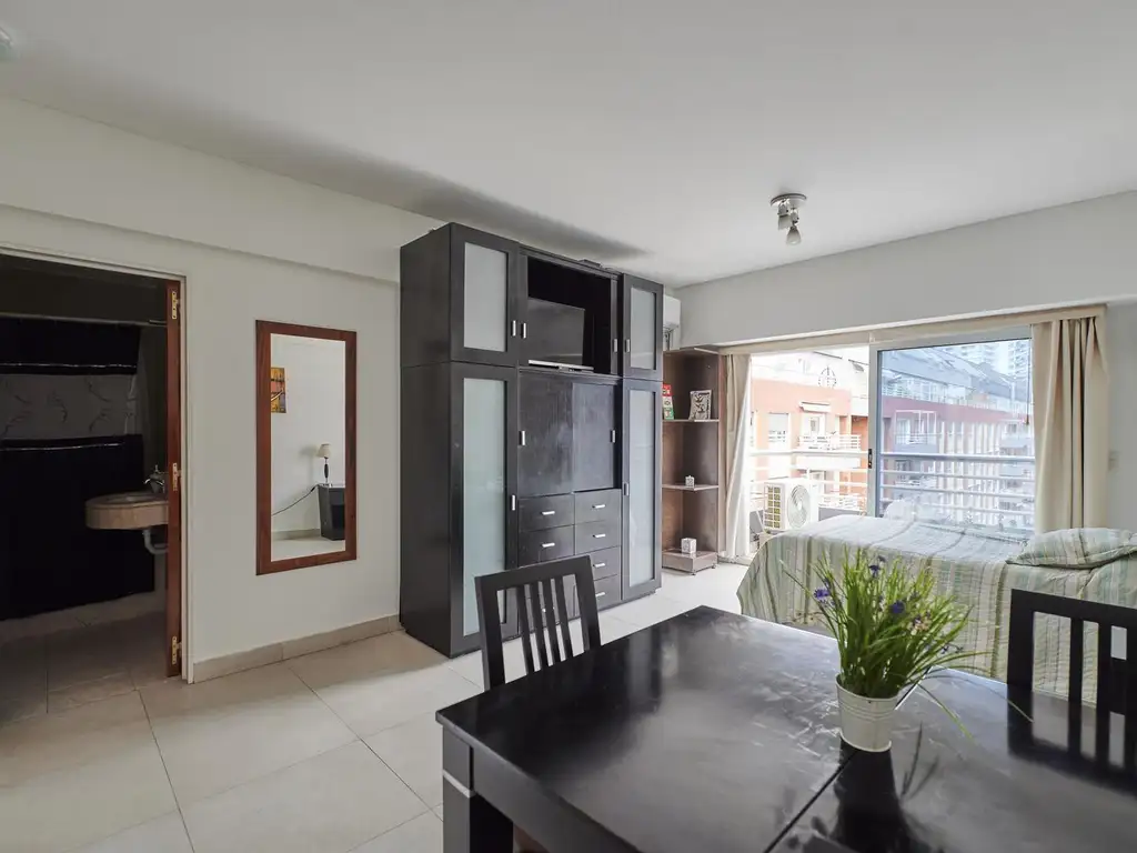Departamento de un ambiente, totalmente equipado y amoblado, posee cama matrimonial.