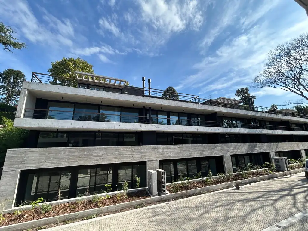 La unidad cuenta con porch de acceso elevado y exclusivo, amplio living comedor con ventanales corridos piso-techo al balcón aterrazado, cocina con isla integrada a la recepción, lavadero separado con baño de servicio, master suite con vestidor, 2 dormitorios mas que comparten un baño, toilette de recepción, en la planta superior cuenta con una amplia sala con parrilla, gran terraza con pisos de deck y sector de jardín con césped natural, pileta de uso exclusivo, muy buenas vistas sobre el entorno arbolado.