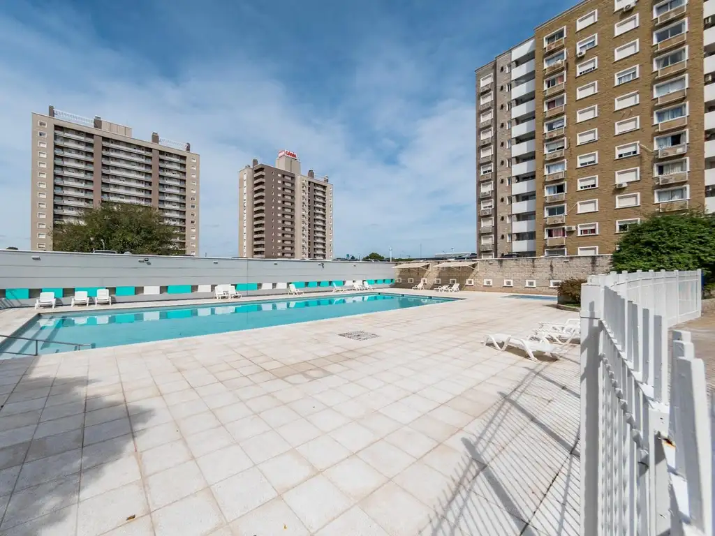 El complejo ofrece pileta, gym, plaza de juegos, locales comerciales, entre otros atractivos.