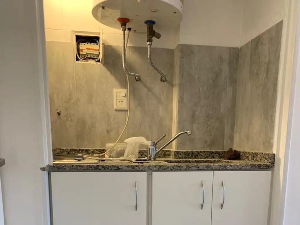 Cocina integrada con mueble bajo mesada y alacena. Placar y baño completo box de ducha y mamparas de vidrio.