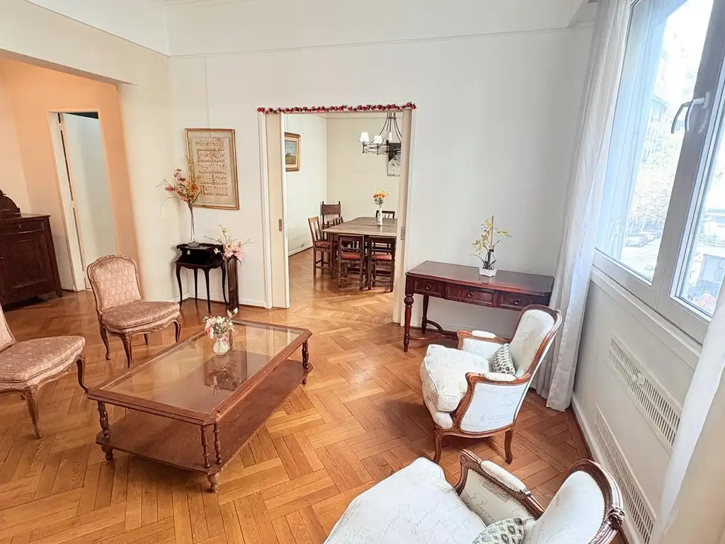 Exclusivo semipiso al frente de aproximadamente 170 m2 totales, ubicado en un edificio de categoría dentro de la zona residencial más distinguida de Recoleta. La propiedad se presenta en excelente estado, amoblada y equipada, con palier privado y cochera ubicada a la vuelta, en la intersección de Montevideo y Guido.