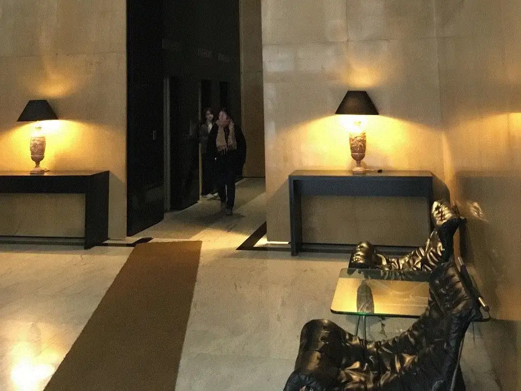 Hall de entrada de gran arquitectura, 3 ascensores principales y 1 de servicio.