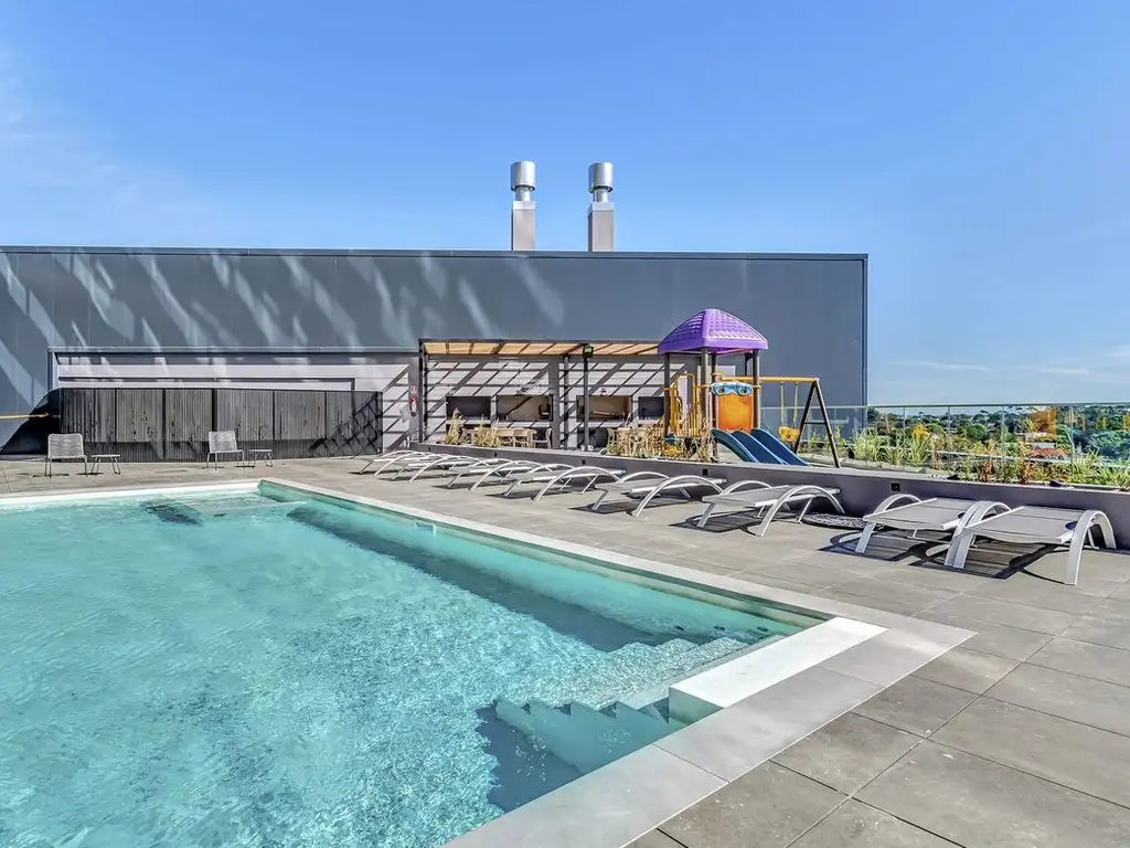El edificio ofrece: gimnasio, seguridad, piscina abierta, área de cine, laundry, estacionamiento para visitas, ascensor, salón de usos múltiples, área de juegos infantiles, recepción, piscina climatizada.