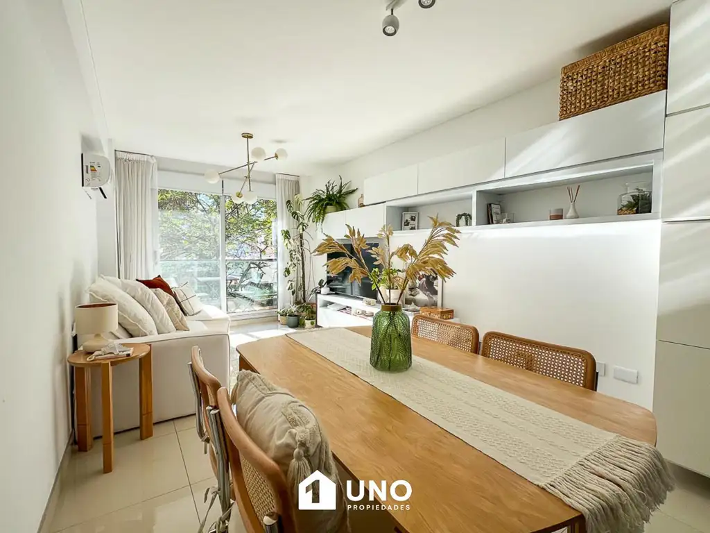 Departamento de 1 dormitorio, muy luminoso, con Ventilación Cruzada y doble balcón al frente y contrafrente. Cuenta con una cocina integrada completamente equipada con bajo mesada y alacenas, baño con bañera y espacio de guardado. Dormitorio con placard y salida al balcón posterior, donde se encuentra el lavadero independiente con lavarropas. Dos aires acondicionados instalados. Cortinas black out. Zona río. Se entrega sin los muebles de las fotos.