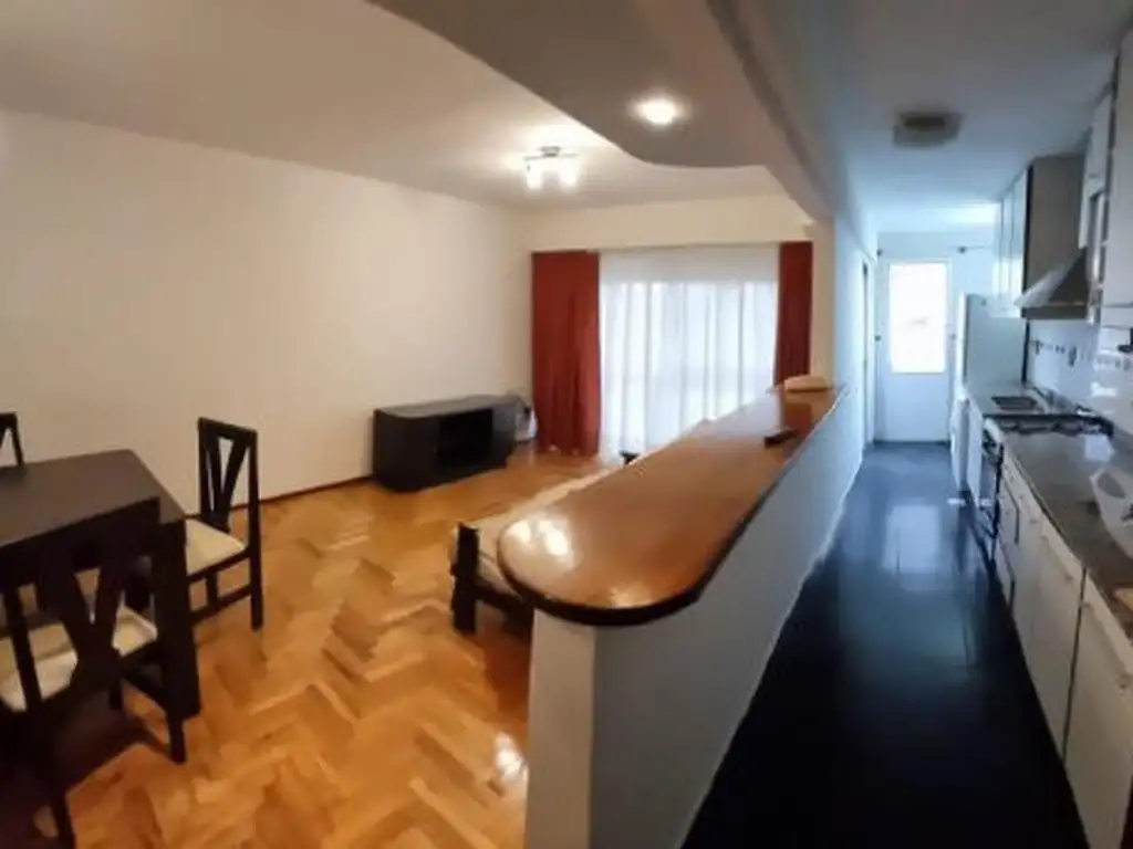 El departamento en alquiler se ubica en un séptimo piso, al frente y se compone de living comedor con salida a un amplio balcón , cocina semi- integrada con conexión para lavarropas, baño completo con bañera y dos dormitorios con placard y un baño de servicio. El departamento se entrega totalmente amoblado con heladera, lavarropas automático, mesa y sillas, cama matrimonial y cama individual.