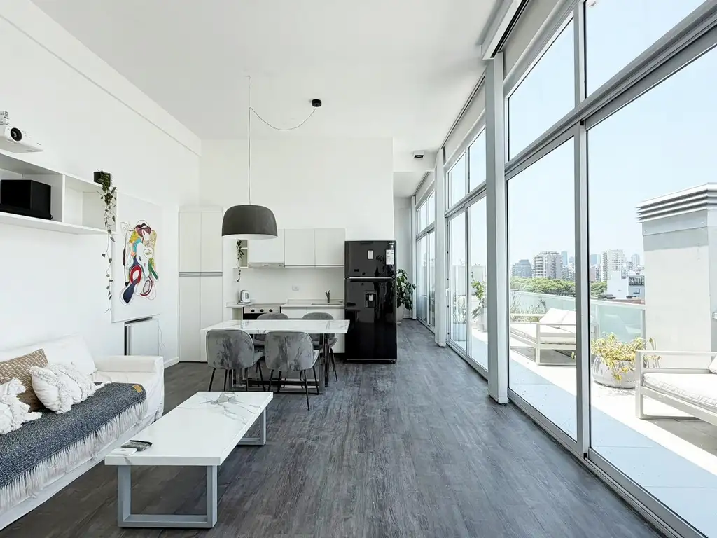 Unidad en 6to piso, con cochera cubierta, y terraza propia con jacuzzi. Distribuida al frente con todos sus ambientes con ventanales de piso a techo (3.60mts de altura)