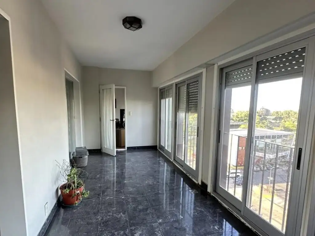 La propiedad se sitúa en el sexto piso, con frente hacia la Avenida Libertador. Su agradable vista se debe a la ausencia de construcciones que obstruyan la luminosidad. Al ingresar, se accede a un hall que conduce a la izquierda al amplio living-comedor, equipado con aire acondicionado y un balcón cerrado, lo que permite su uso durante todo el año.