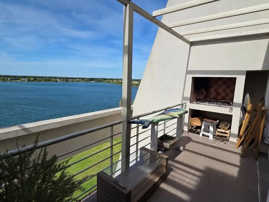 EL DEPTO TIENE 2 BALCONES TERRAZAS UNO AL LAGO CON PARRILLA Y OTRO BALCON EN EL DORMITORIO QUE DA A UNA HERMOSA ARBOLEDA - LIVING COMEDOR AL LAGO-COCINA ,SEPARADA DEL LIVING - 1 BAÑO COMPLETO ,DORMITORIO MUY AMPLIO CON PLACARES DE PISO A TECHO CORREDIZOS , todos los departamentos tienen su Balcón Terraza al LAGO DE 41 HECTAREAS -El lago una antigua cantera con lecho de piedras, el mas azul de Villanueva cuya agua es mitad dulce, mitad salada .-