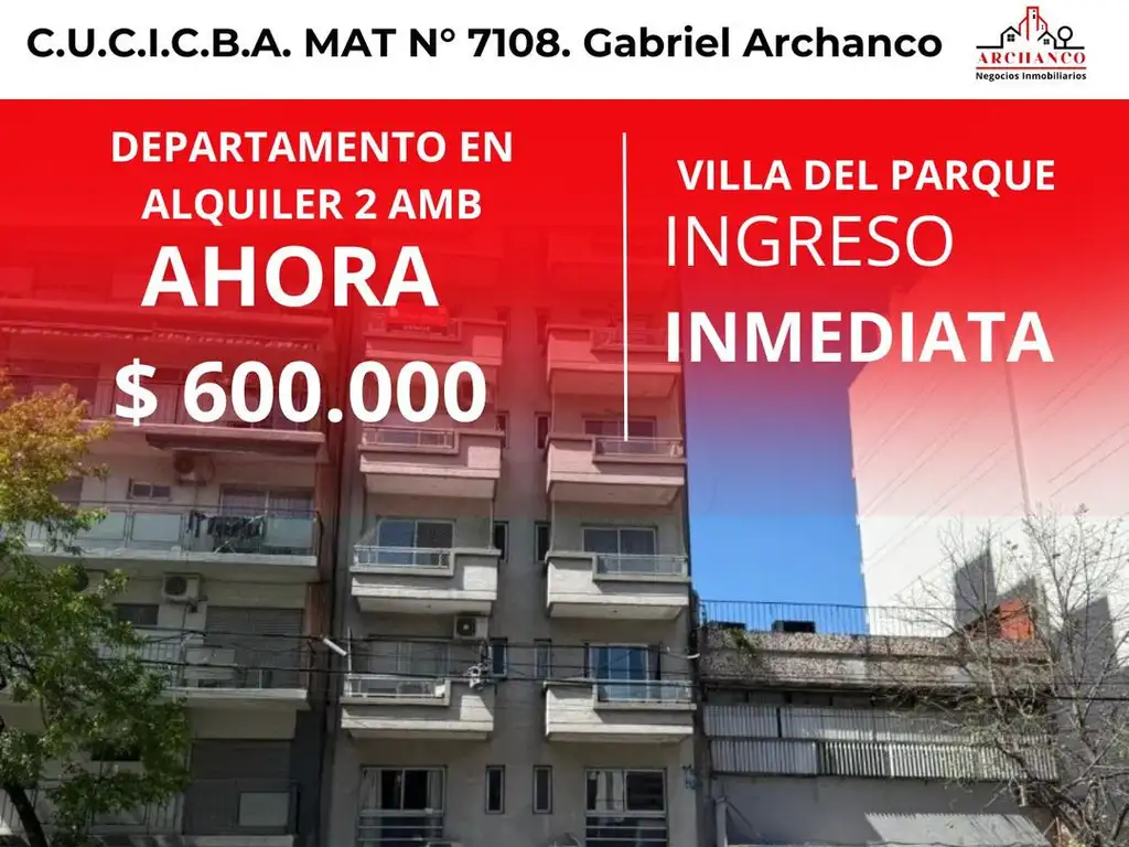 Departamento en alquiler 2 ambientes villa del parque