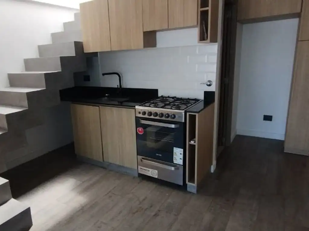 Ambiente luminoso y versátil, pensado para quienes valoran los espacios inteligentes. Su distribución estratégica permite delimitar un sector de dormitorio con un práctico placard y aire acondicionado , creando una sensación de privacidad sin renunciar a la amplitud. La cocina integrada, equipada con muebles sobre y bajo mesada, y un horno a gas, se convierte en el corazón funcional del espacio.