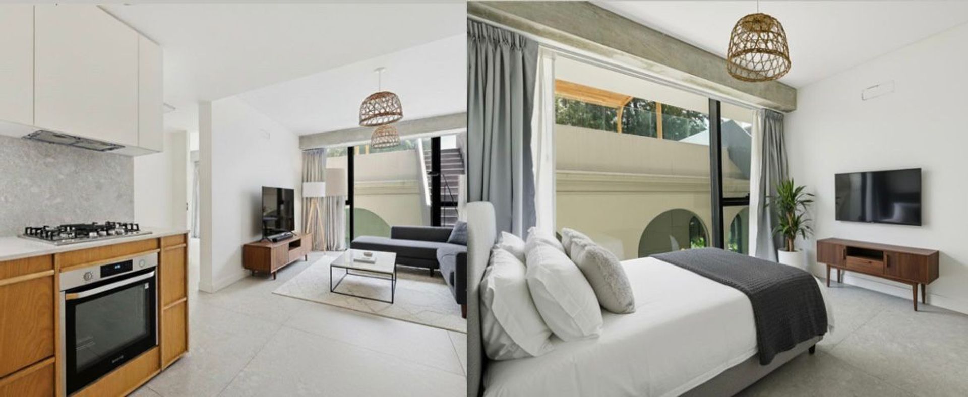 El inmueble se encuentra en un entrepiso de un edificio de cuatro pisos, con orientación norte que garantiza luminosidad natural durante todo el día. Cuenta con una distribución estratégica que maximiza los espacios interiores, incluyendo dormitorio principal en suite con vestidor, cocina integrada al living/comedor y baño completo.