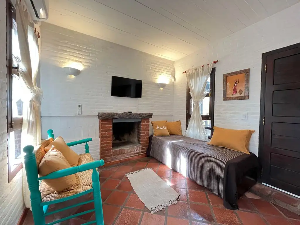 -Living Comedor con sofacama y cama carrito, aire acondicionado y estufa hogar.