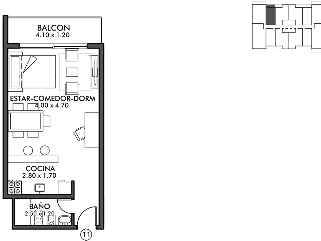 Unidad monoambiente 1 Baños , con capacidad para 2 personas