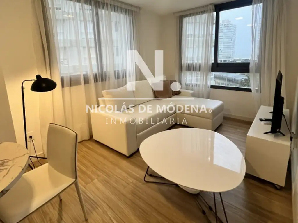 Apartamento luminoso, living comedor con vista a ala Brava