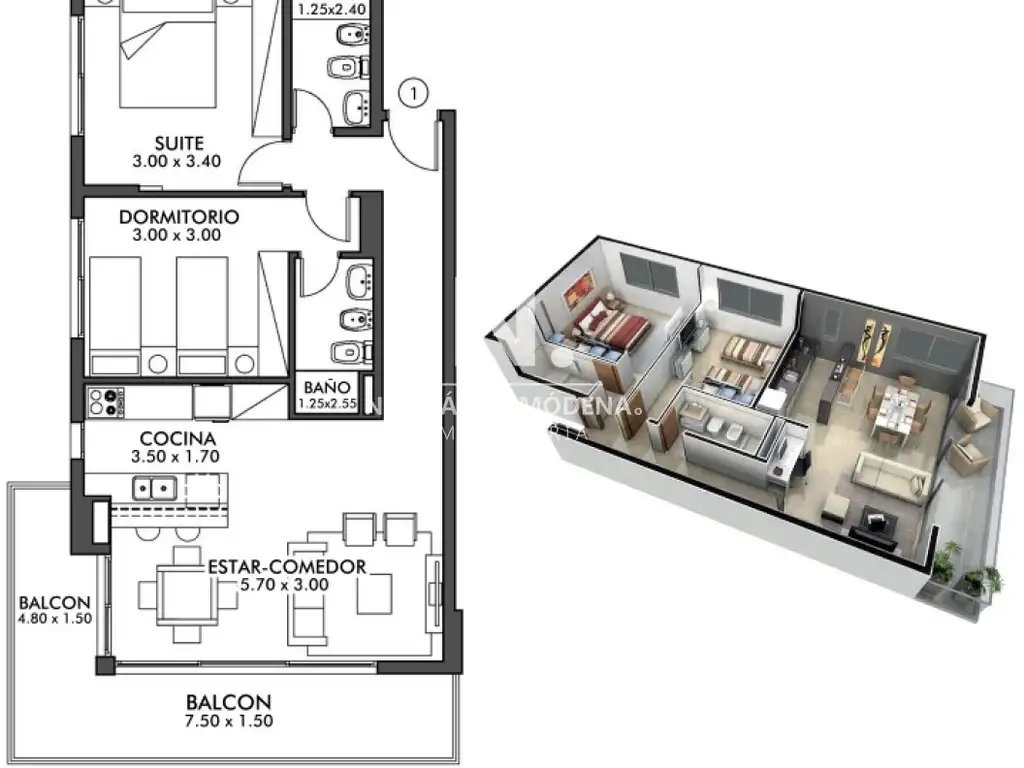 - 1 dormitorio