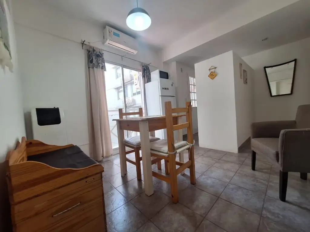 Living amoblado y decorado, dispone de Aire acondicionado y estufa, teniendo conexión con balcón francés.