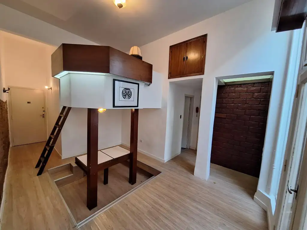 El departamento dispone de un entrepiso situado encima del espacio del Living Comedor, el entrepiso cuenta con una cama de una plaza, una television con "Chrome-Cast" y Escritorio amplio