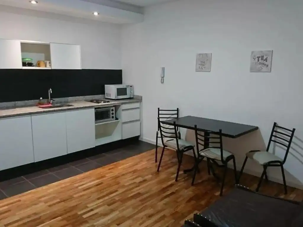 Cocina integrada con heladera con freezer y microondas. Baño completo con bañera.