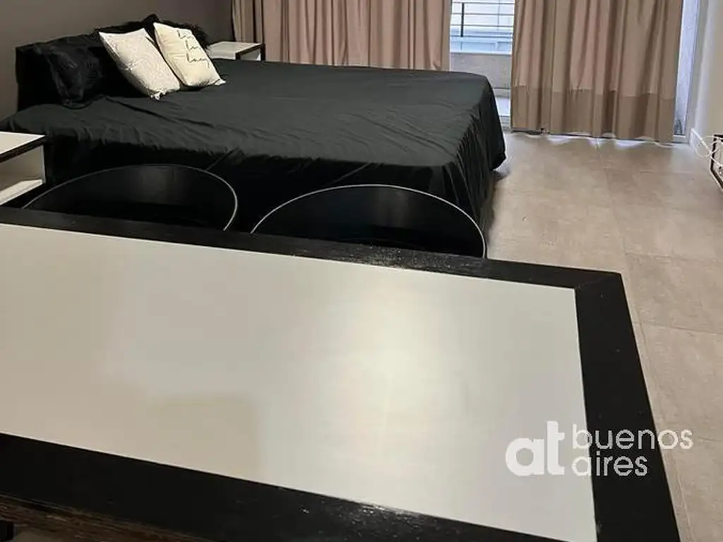 Ambiente con aire acondicionado frio/calor. Cocina integrada completa con barra desayunadora, equipada con electrodomésticos de primera línea - heladera con freezer, Anafe y horno eléctrico, pava eléctrica, Smart tv . Baño completo.