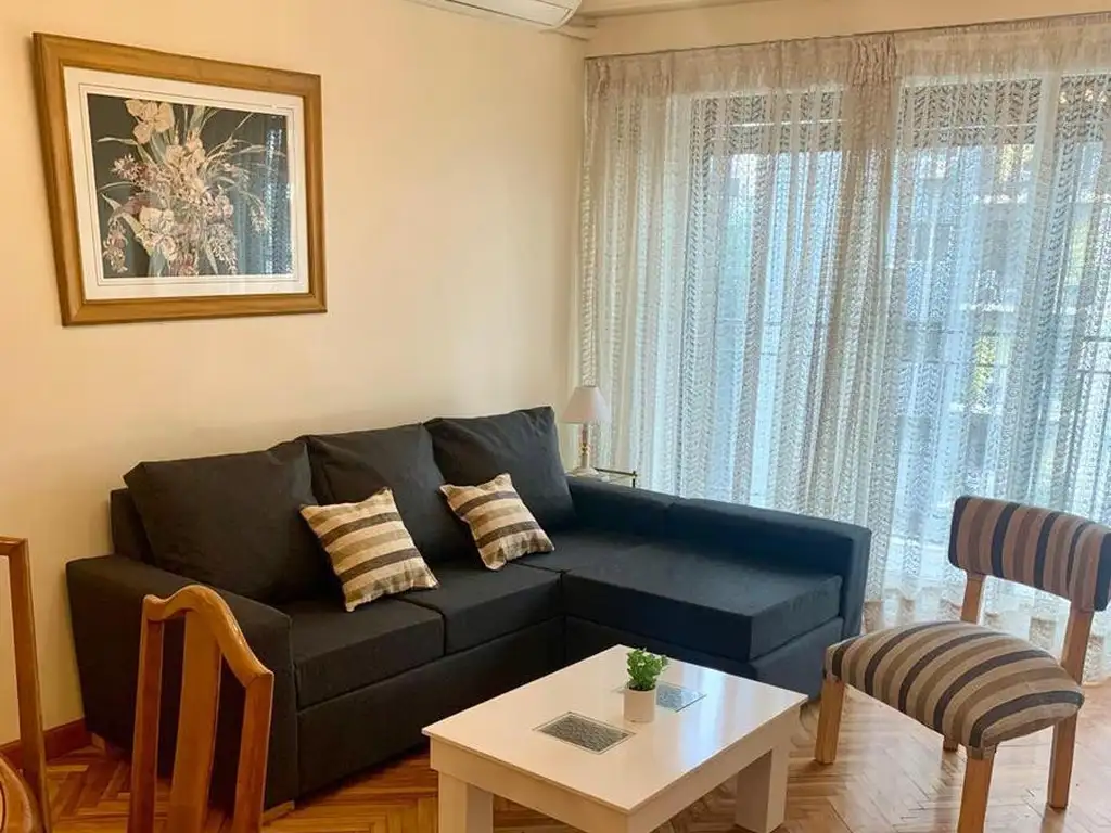 La unidad ubicada en un cuarto piso, tiene doble circulación y 2 entradas, la principal al frente por medio de un palier privado, por donde se accede al Living Comedor, completo con mesa y 6 Sillas, dos vajilleros: uno bajo y otro alto, 2 Sillones de 2 cuerpos y TV Smart, con aire acondicionado Frío /Calor, gran ventanal y balcón Corrido.