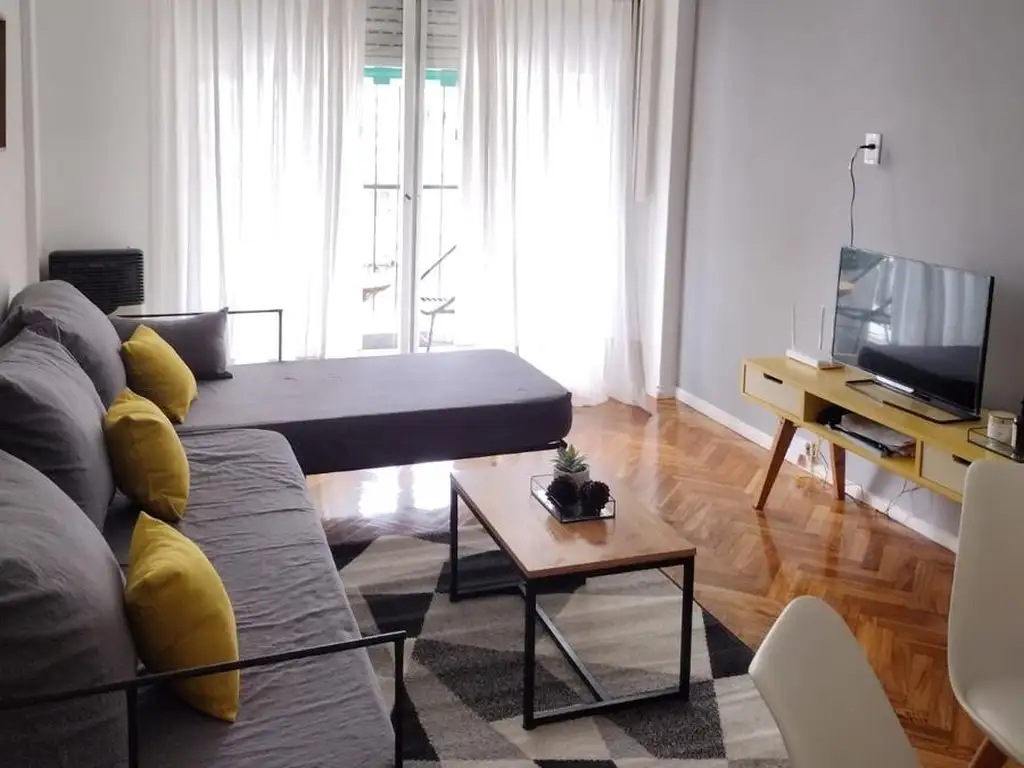 Excelente temporal de 2 Ambientes, con amplio Living, balcón al contra-frente, Sup. 52 m2, Muy Luminoso totalmente equipado y amoblado,