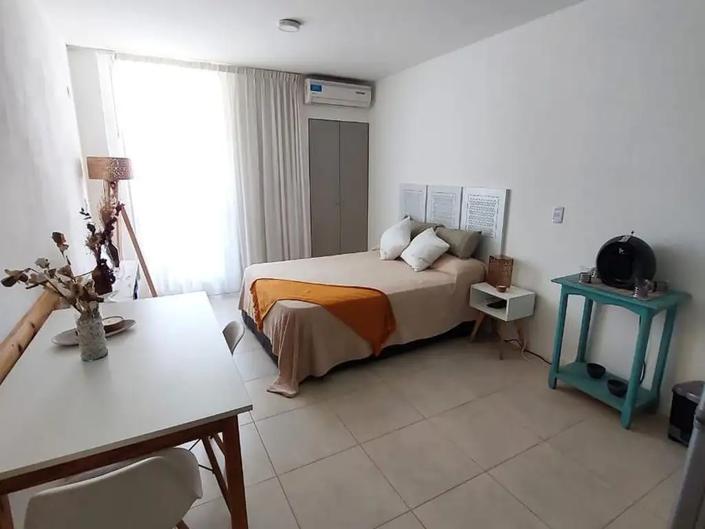 La unidad cuenta con mesa de comedor con dos sillas - mueble con espacio de guardado y maquina de cafe - rack TV Smart. El sector de dormitorio cuenta con cama sommier de dos plazas - aire acondicionado Split frio/calor - mesa de luz con velador -