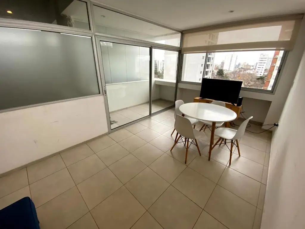 Departamento en alquiler temporal de un dormitorio amoblado, con balcón al frente. y cochera descubierta.