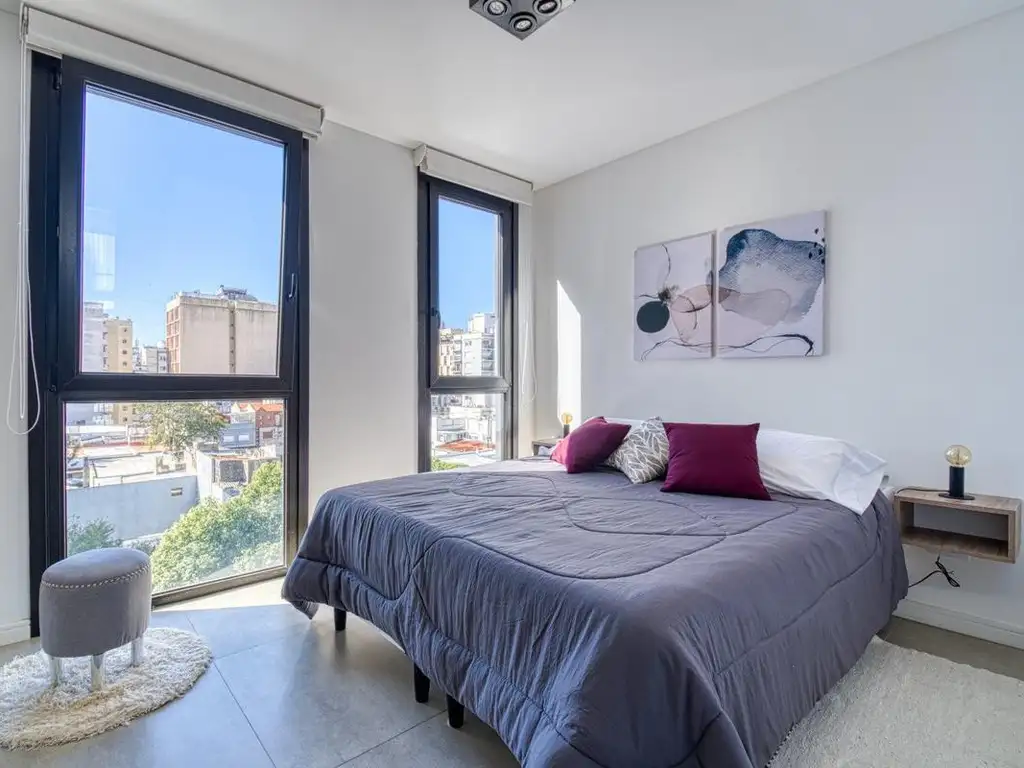 El alojamiento cuenta con un sommier de 2 plazas en su dormitorio, un baño completo con ducha dividida por mampara, living comedor con un diván de dos camas de 1 plaza, un toilette de recepción o baño de servicio y aberturas de doble vidreado que dan acceso a un amplio balcón orientado al frente. Cocina semi integrada con barra desayunadora de mármol acompañada de 2 banquetas de altura regulable, heladera con freezer no frost, lavarropas, horno, microondas, y vajilla completa.