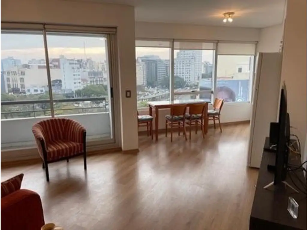 -Living-comedor con sofá de dos cuerpos , aire acondicionado , mesa rectangular con dos 2 sillas , cuenta con salida al balcon