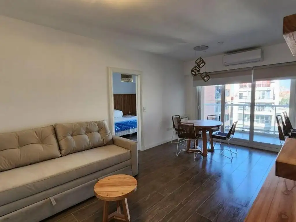 Cuenta con área de living comedor, con cocina semi separada por una barra, acceso a un balcón con vista al frente, equipado con mesa, sillas, luces de diseño y construcción de alta calidad.