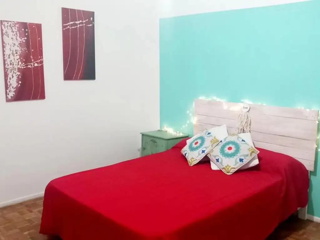 Excelente conexión con medios de transportes (colectivos y subtes) Cuenta con una cama de dos plazas, mesa con 2 sillas, placard, baño completo y cocina equipada. Heladera con feezer, Tv, Internet, Servicios incluídos (tope de luz, que si se excede corre por cuenta del inquilino) Paquete u$s 350