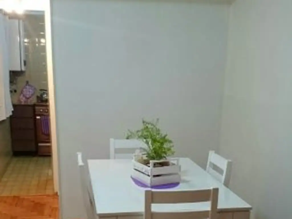 Palermo, Mario Bravo 1100, 3er piso, 1 amb, 35m2, $ 550,000 + expensas (Oct 2025= $ 73,000) + servicios. 06-12-25 Lindísimo mono ambiente dividido con baño y cocina completa . Living con mesa rectangular 4 sillas y sillón matero, dividiendo el ambiente un amplio placard . Dormitorio con sommier de dos plazas . Cocina completa con profusión de alacenas , heladera baja sin freezer, cocina a gas de cuatro hornallas y horno , electrodomésticos , vajilla , utensilios. Baño completo con bañera. No luminoso.