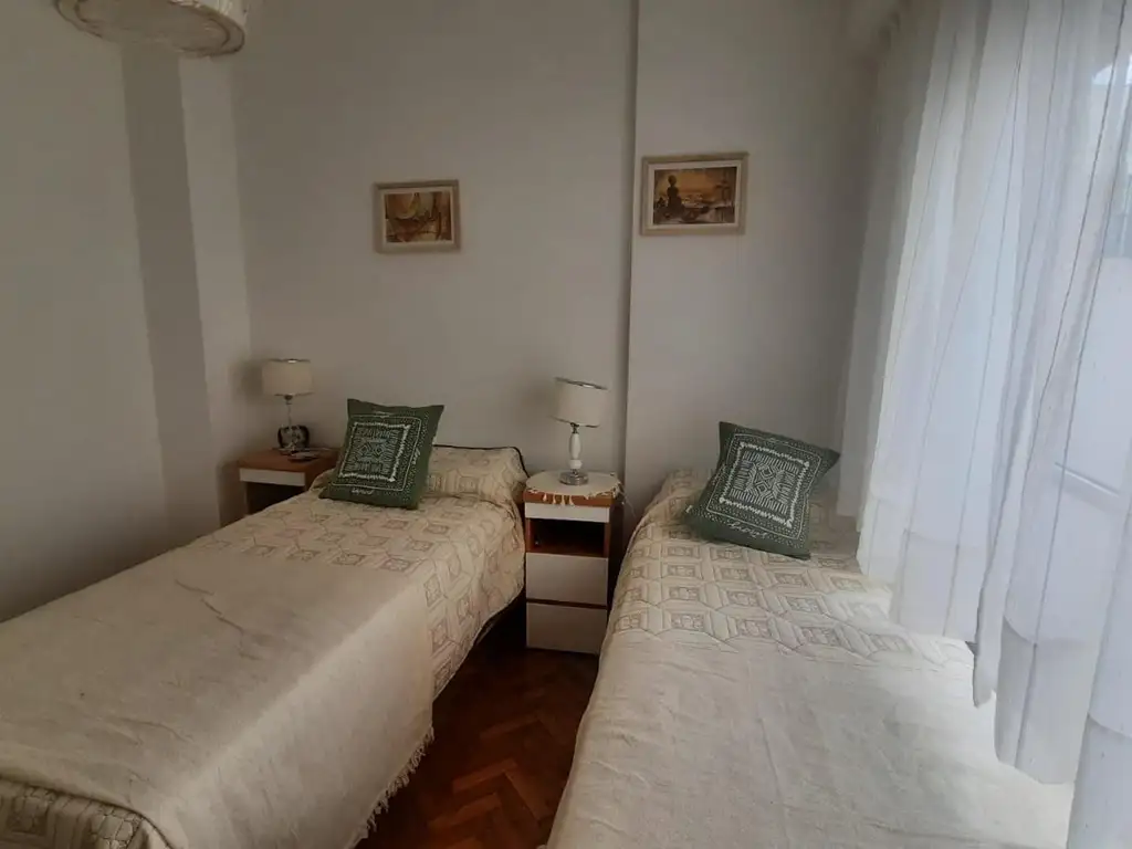 El departamento se encuentra en un piso alto y tiene un balcón corrido que da al contrafrente con vista abierta. Cuenta con Living con Sofá cama doble, TV, sector comedor con mesa y sillas para cuatro, pasillo con amplio placard, aire acondicionado frío/calor. Cocina separada completa, heladera con freezer a estrenar, microondas, pava eléctrica, vajilla completa. Tiene una puerta que da a un lavadero con pileta. El dormitorio cuenta con 2 sommiers de una plaza que pueden formar una cama doble, y amplio placard. Baño completo con bañera. Calefacción por losa radiante.