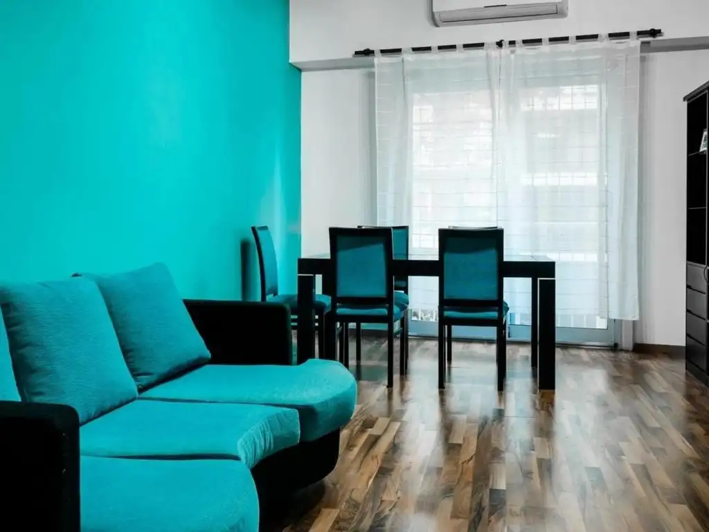 El departamento esta ubicado en piso bajo, con vista hacia el frente.La cocina es independiente y esta completamente equipada con heladera con freezer, cocina a gas electrodomesticos y vajillas.El living comedor tiene un ventanal con salida al balcón, cuenta con aire acondicionado y tv.