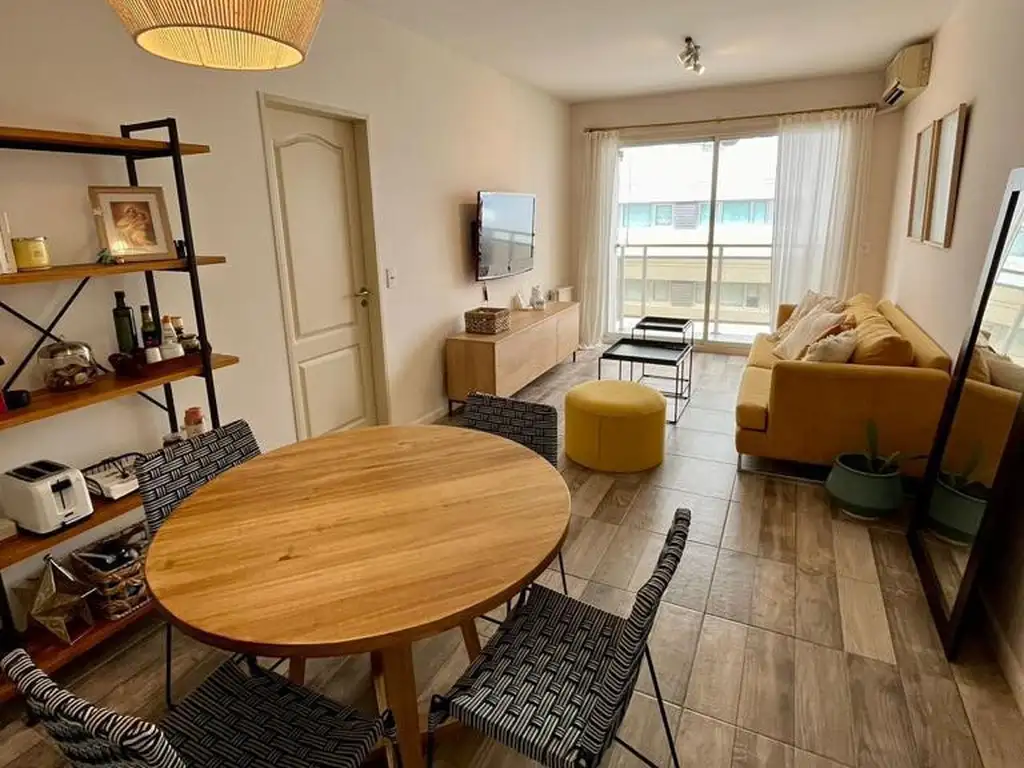Living - comedor, amplio con salida al balcón, Mesa redonda con 4 sillas, sillón de 2 cuerpos TV, mesas ratonas, y un espejo de pie.