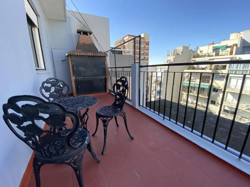Lo mejor de este piso 9 es el balcón terraza con parrilla propia y vista abierta. Mesa con 4 sillas para disfrutar de un buen asado.