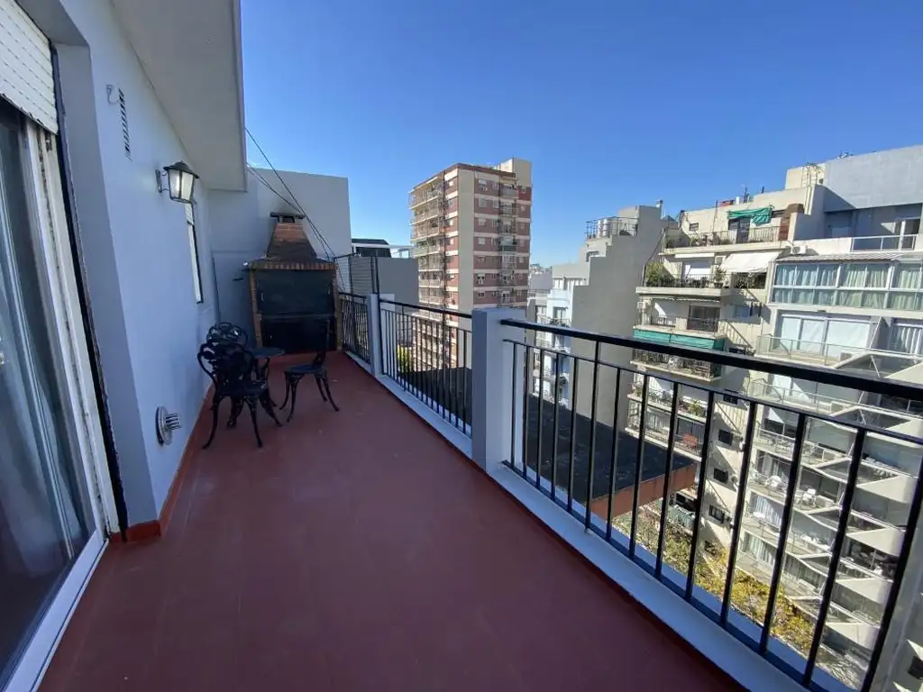 Lo mejor de este piso 9 es el balcón terraza con parrilla propia y vista abierta. Mesa con 4 sillas para disfrutar de un buen asado.