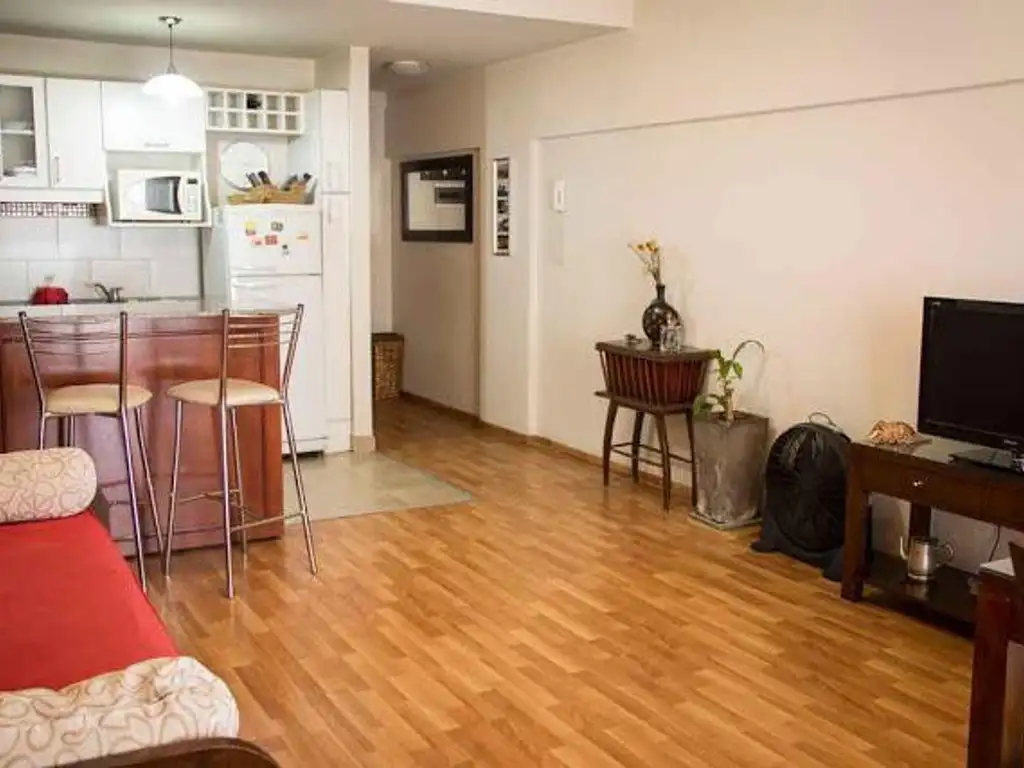 El departamento está completamente amoblado cuenta con living amplio muy luminoso, con espacio para su comodidad, con aire acondicionado, en el podemos encontrar una juego de comedor con 4 sillas, un sofa cama con dos colchones de alta densidad, sillón individual, rack con TV. La cocina posee alacenas y bajo mesadas, barra desayunador en la misma con espacio para guardar la vajillas, heladera, cocina de cuatrohornallas con horno, y equipamiento (vajillas, cafetera, pava eléctrica, microondas, tostadora).Balcón abierto con entrada de luz hacia el living con una excelente vista.