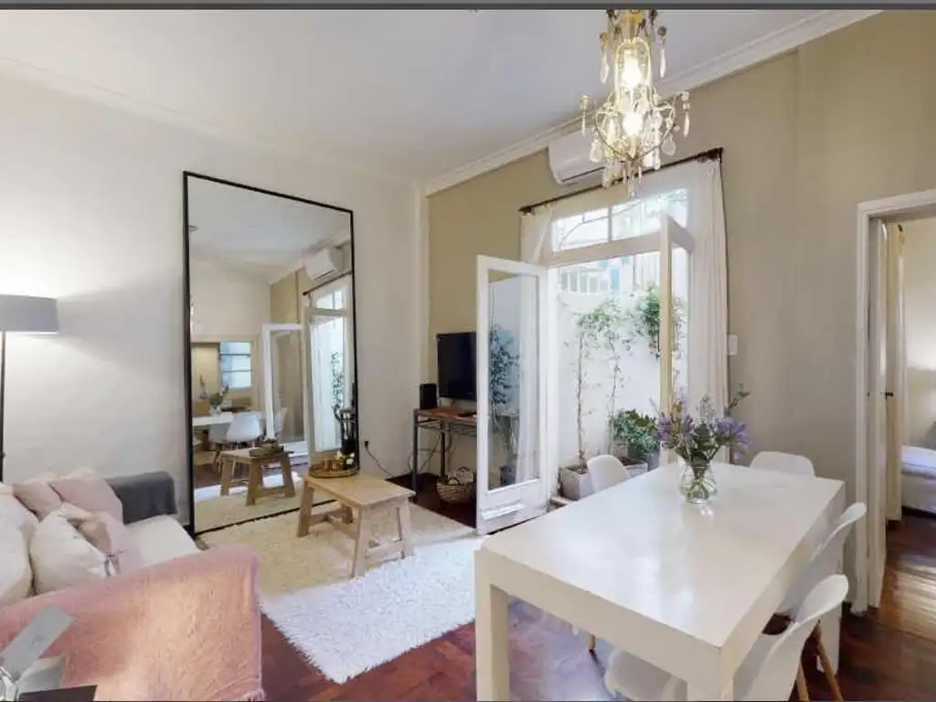 El departamento cuenta en planta baja, muy luminoso, cuenta con living amplio con sillón, aire acondicionado, mesa ratona, mesa con sillas de estilo nórdico, espejo grande, televisión, escritorio, lampara de decoración, araña, salida directa al patio de uso privado. Cocina amplia con bajo mesada, microondas, cocina con horno, utensillos de cocina, tostadora, cafetera, lavarropas y secarropa, heladera con frezzer. Baño completo con bañera, inodoro, Bidé lava manos. Habitación con cama matrimonial, mesa de luz, placard grande. Patio privado con mesa y sillas.