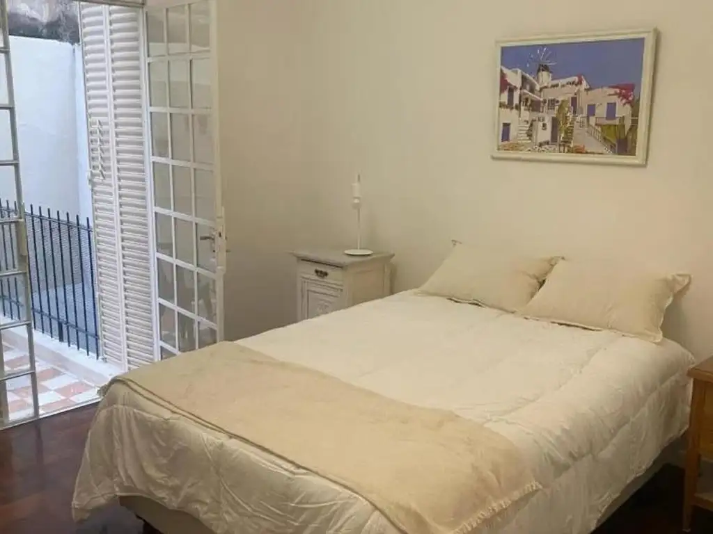El departamento es un dos ambientes con pisos de parquet, super luminoso, tiene un patio con sol todo el día. Un dormitorio con cama de dos plaza y una mesa de luz. Ambientes muy luminosos. La cocina con ventilación natural, mueble de alto y bajo mesada. Heladera con frízer y aparato Calefón a gas.