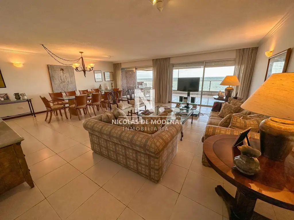 Living comedor apaisado al frente con vistas directas al mar, cocina definida con sector de lavadero, 3 dormitorios, 3 baños completos, amplio balcón al frente y balcón al contrafrente al que se accede desde dormitorio secundario.