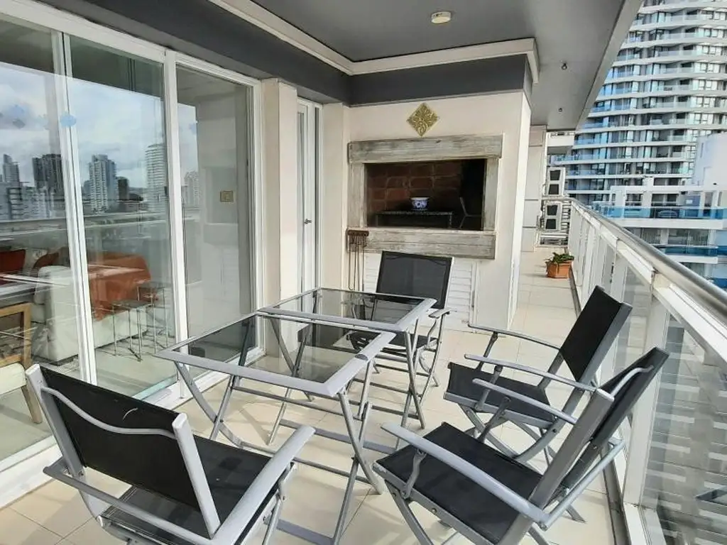 El departamento cuenta con amplio living comedor con salida directa al balcón terraza, el cual cuenta con parrilla propia y al extenderse a lo largo de todo el lateral, hace posible que se acceda al mismo desde todos los ambientes.