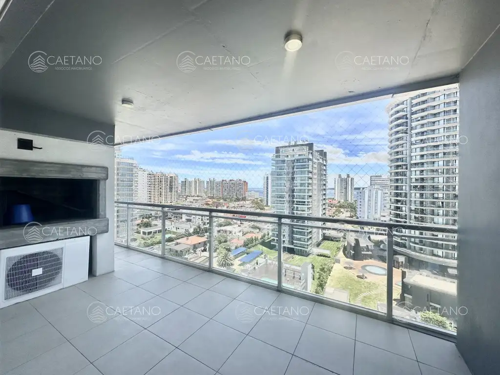 El apartamento en cuestión ofrece 104 metros cuadrados distribuidos de manera inteligente: un amplio living comedor que invita a la comodidad y el relax, tres dormitorios, entre los cuales uno es en suite, y dos baños completos. La cocina está definida y equipada con todo lo necesario para una estancia confortable. Además, cuenta con un gran balcón que incluye parrillero, perfecto para disfrutar de comidas al aire libre con vista a Playa Mansa.