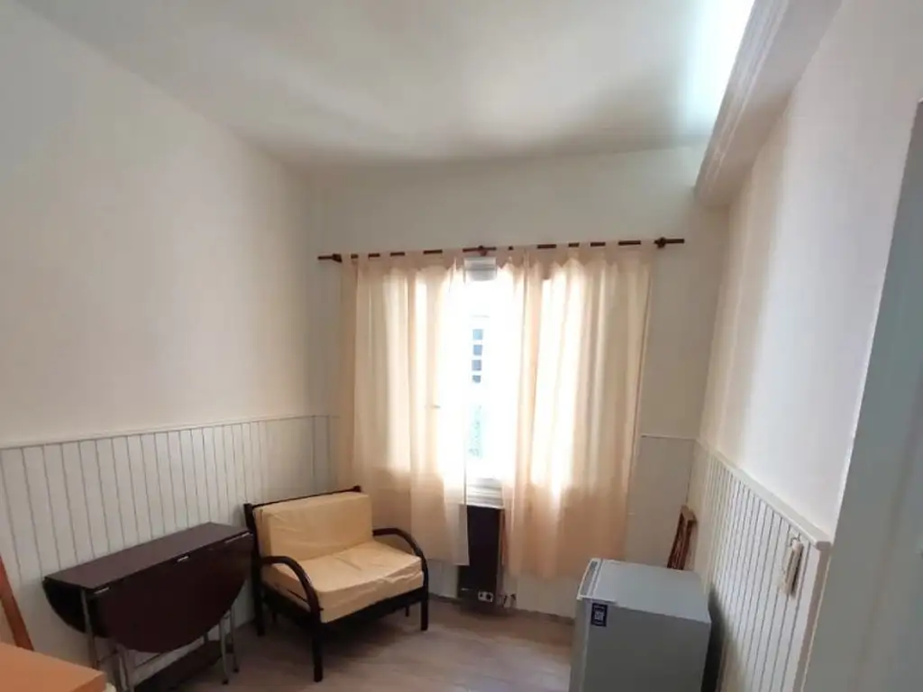 Unidad interna pero luminosa. Living comedor con TV, mesa, 3 sillas y sofá cama de 1 plaza.