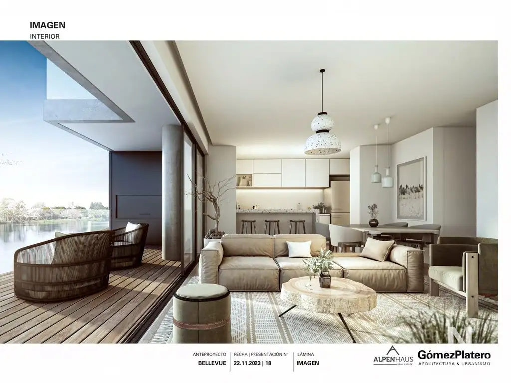 La incorporación de un jardín verde elevado, la imponente extensión del cuerpo de agua y la perspectiva más lejana del área rural de Canelones completan el paisaje desde el interior hacia las diversas orientaciones.