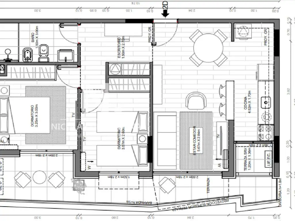Apartamento de 2 dormitorios