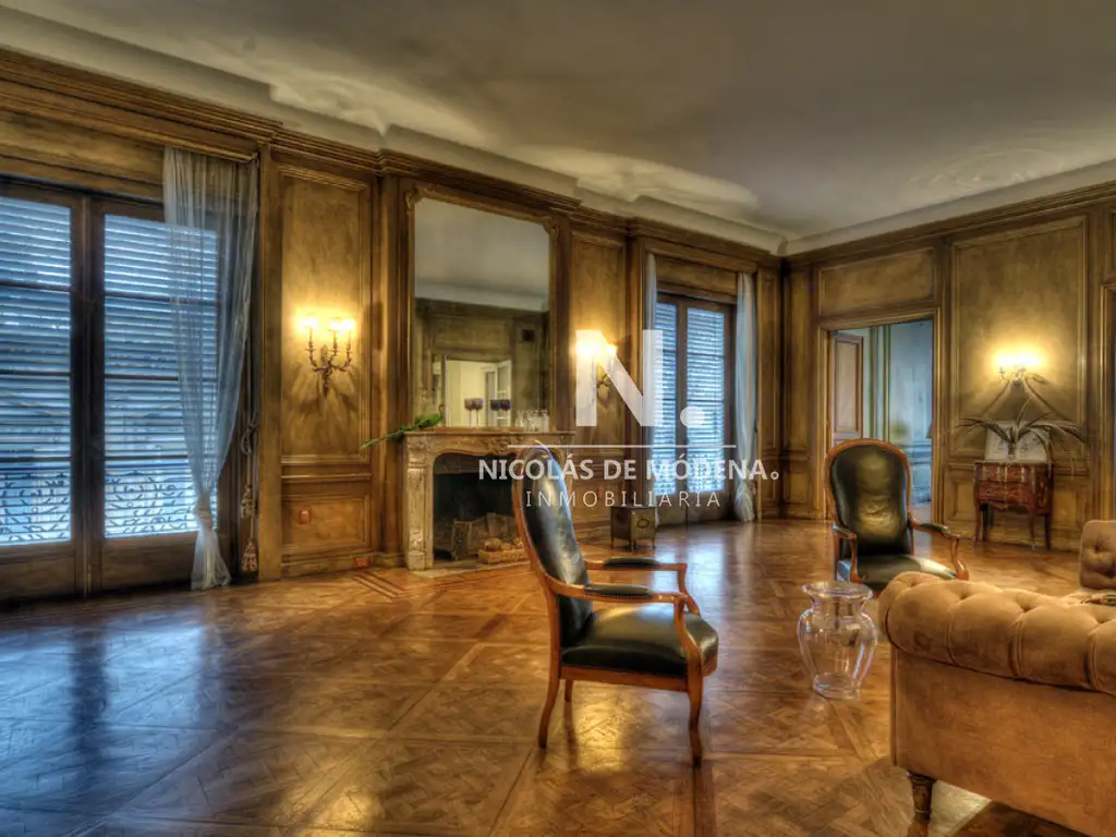 Parquet en Roble Eslavo. Tres magníficas estufas de mármoles Italianos, salidas de Versailles! con ornamentación en bronce y lunas francesas con marcos bañados en oro.
